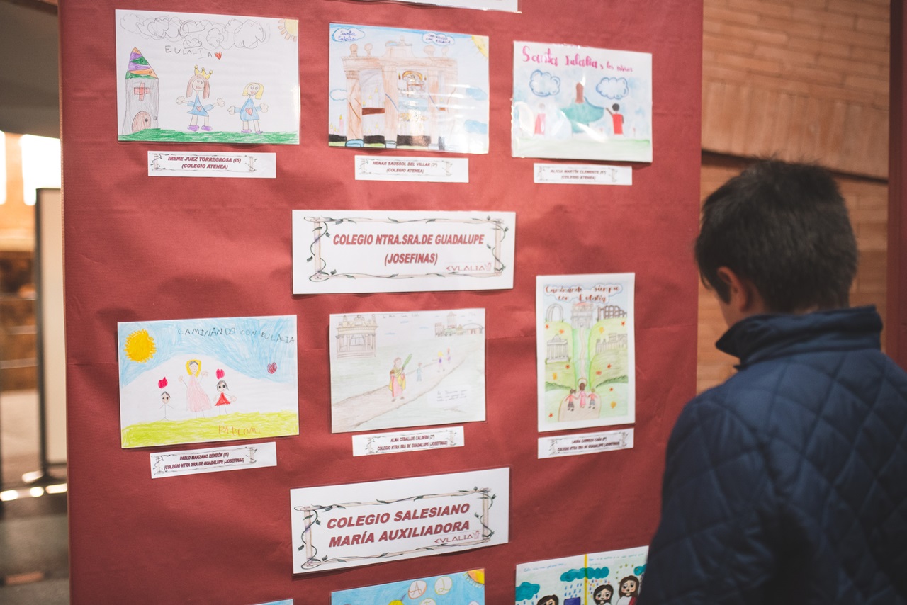 La Asociación de la Virgen y Mártir Santa Eulalia ha presentado esta mañana la exposición con una selección de los 4.563 dibujos participantes en el concurso escolar “Caminando con Eulalia” en el que han participado 19 colegios de la ciudad y 9 de la comarca.