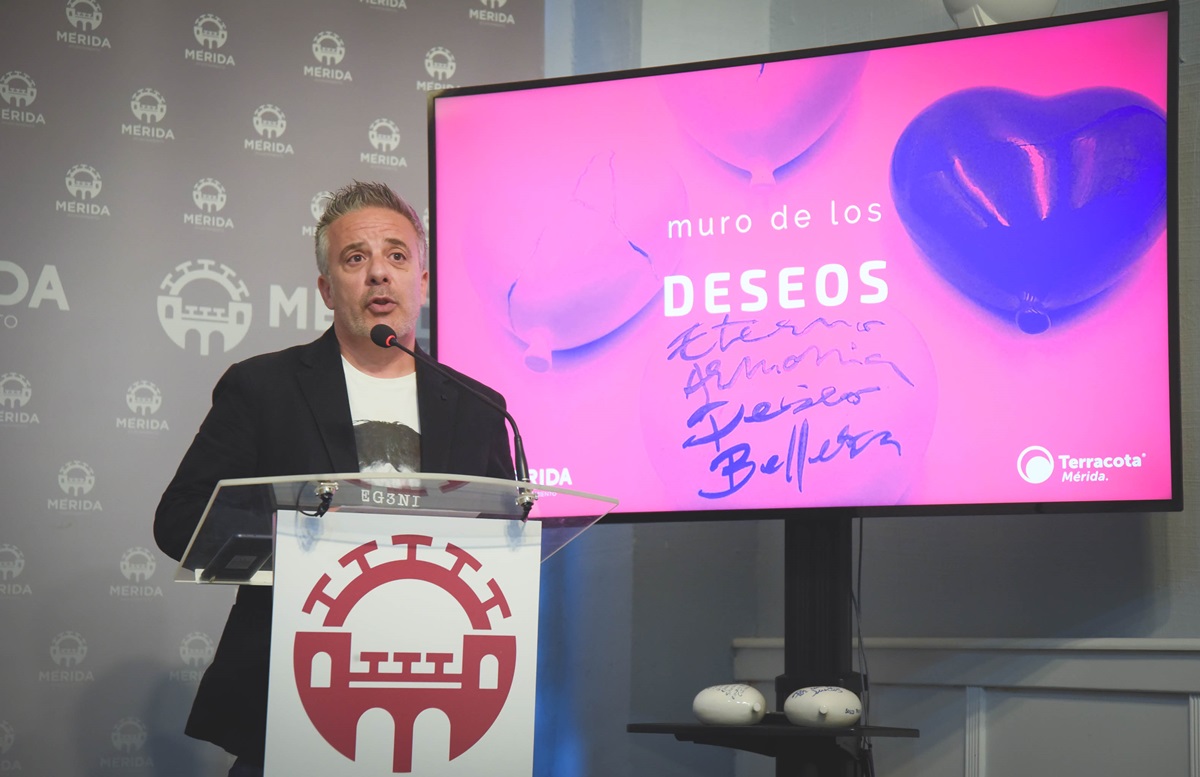 • Es un proyecto ilusionante que permite la participación de vecinas y vecinos, artistas, abierto quien quiera participar; cada persona depositará un deseo que se colgará en cada corazón del muro” explica Juan Manuel Pérez Vinagre que añade que “es una forma de dejar huella en la ciudad y servirá para potenciar la imagen de Mérida como signo distintivo”