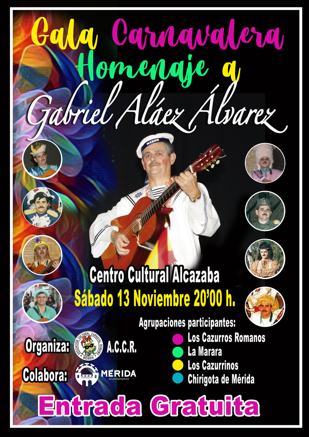 El próximo 13 de noviembre, a las 20:00 horas en el auditorio del Centro Cultural Alcazaba el mundo del Carnaval se reunirá para homenajear a Gabriel Aláez. Uno de los escritores y músicos más prolijos del Carnaval Romano, ya fallecido, y que sigue estando presente en la memoria de todas y todos los carnavaleros.