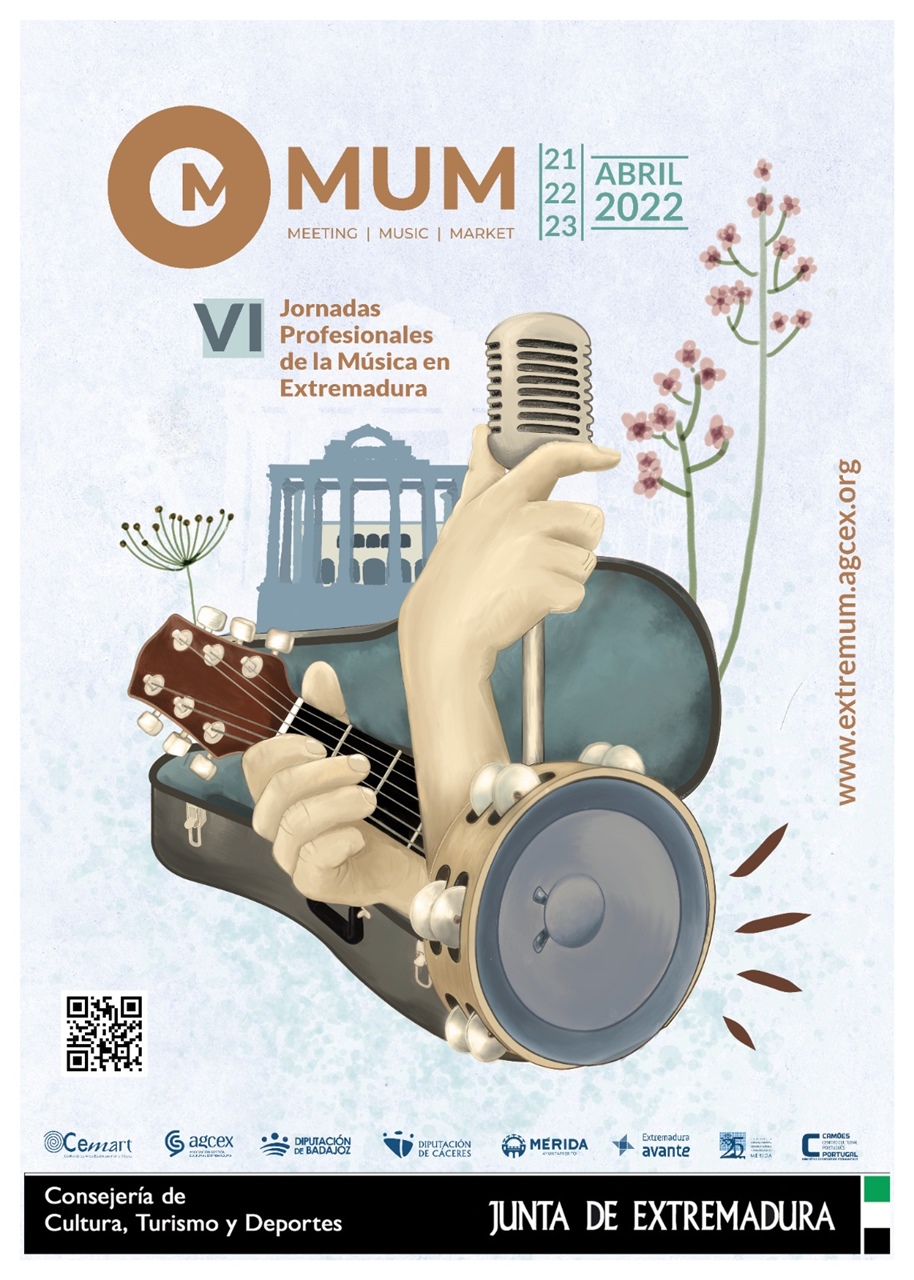 Las Jornadas Profesionales de la Música en Extremadura (MUM2022) se desarrollarán durante los días 21, 22, 23 de abril de 2022 en Mérida. La programación de las Jornadas contará actuaciones promocionales (showcases), mesas de debate, conferencias, encuentros profesionales, pitchings, encuentro comerciales, etc
