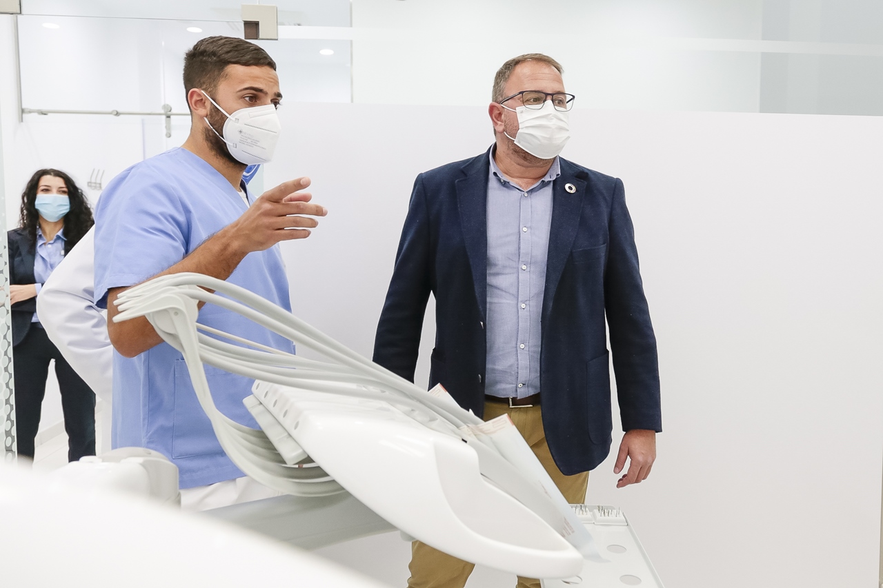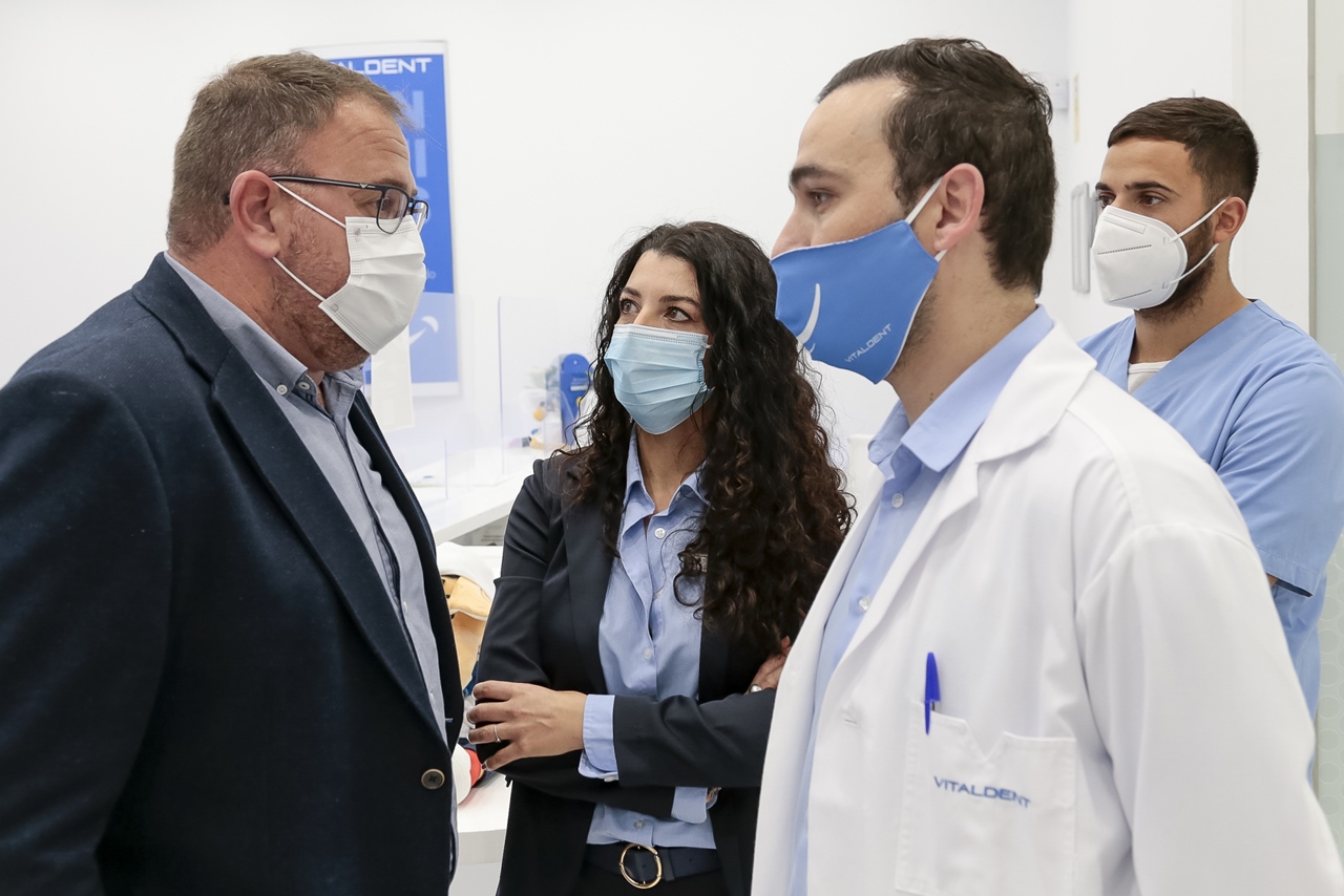 El alcalde de Mérida, Antonio Rodríguez Osuna, ha visitado las instalaciones de la clínica Vitaldent en la calle Santa Eulalia para saludar a sus nueve empleados y conocer de primera mano el funcionamiento de este centro sanitario. El alcalde ha comprobado las excelentes instalaciones con las que cuenta este centro “que se trata de un modelo de negocio en expansión en Mérida y que no sólo aportará al sector de la salud sino del comercio en la ciudad. Les deseo toda la suerte del mundo y el acompañamiento del ayuntamiento en todo lo que necesiten”, ha remarcado el alcalde.