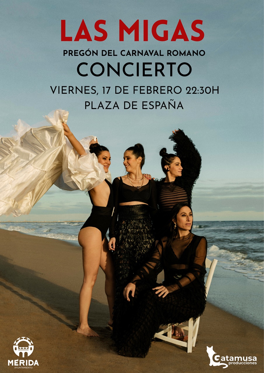 El viernes, 17 de febrero, el grupo ‘Las Migas’, con la emeritense Carolina Fernández ‘La Chispa’ al frente, pregonará el Carnaval Romano y, posteriormente, ofrecerá un concierto. A partir de las 22:30 horas, en la carpa de la Plaza de España