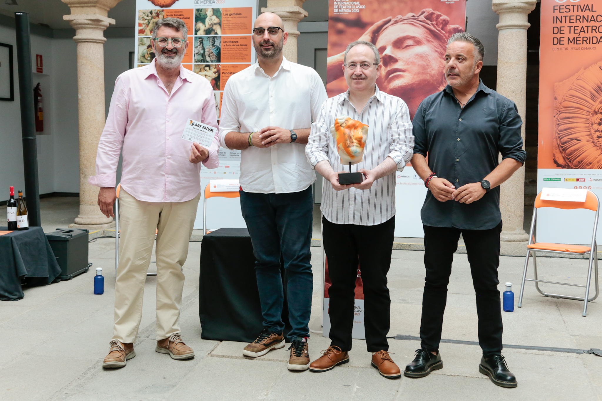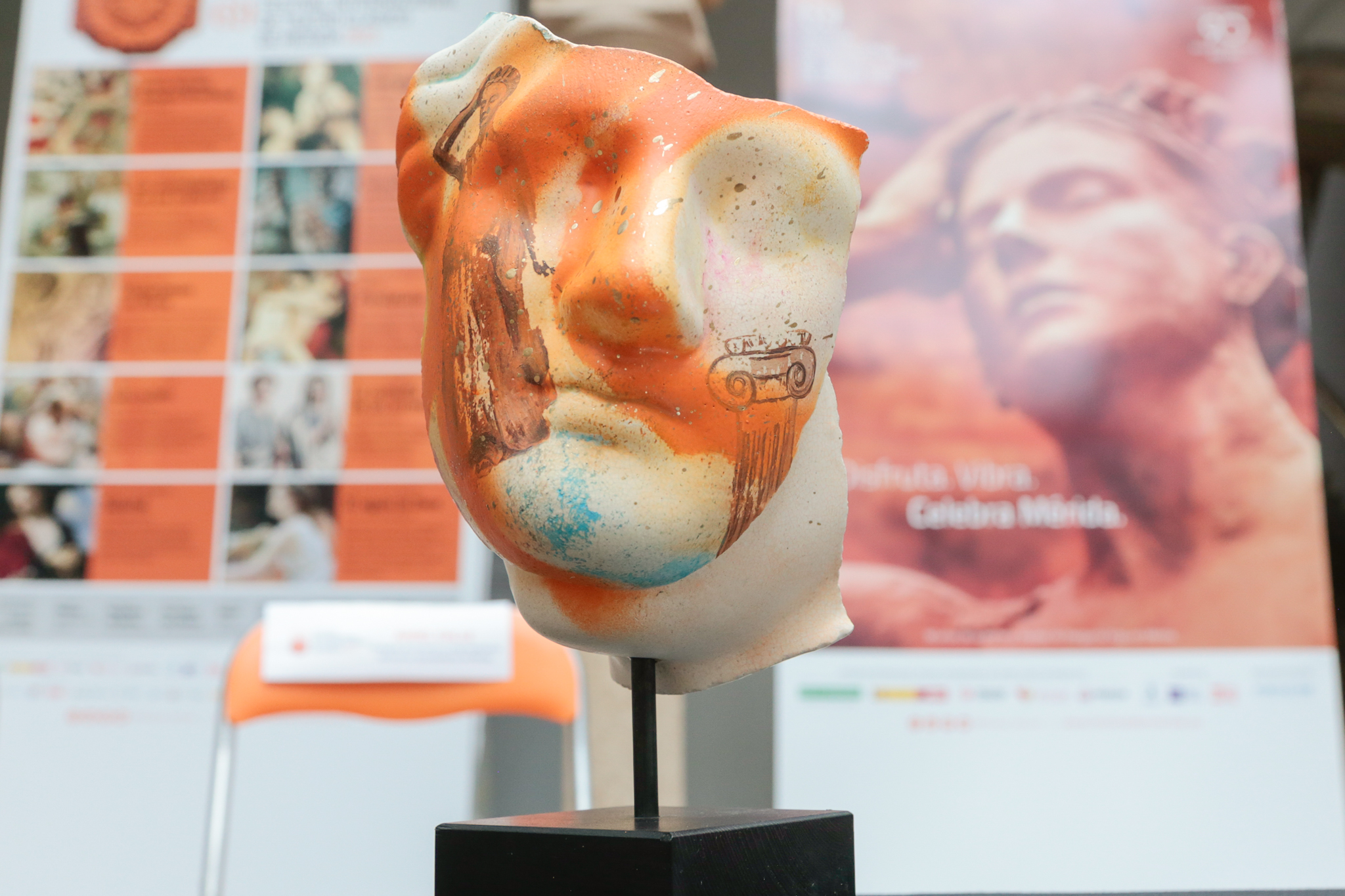 El delegado de Comercio y Emprendimiento, José Ángel Calle, ha asistido esta mañana a la presentación de la sexta pieza de la colección “Ars Fatum” de Terracota Mérida, que realiza para el Festival Internacional de Teatro Clásico de Mérida.