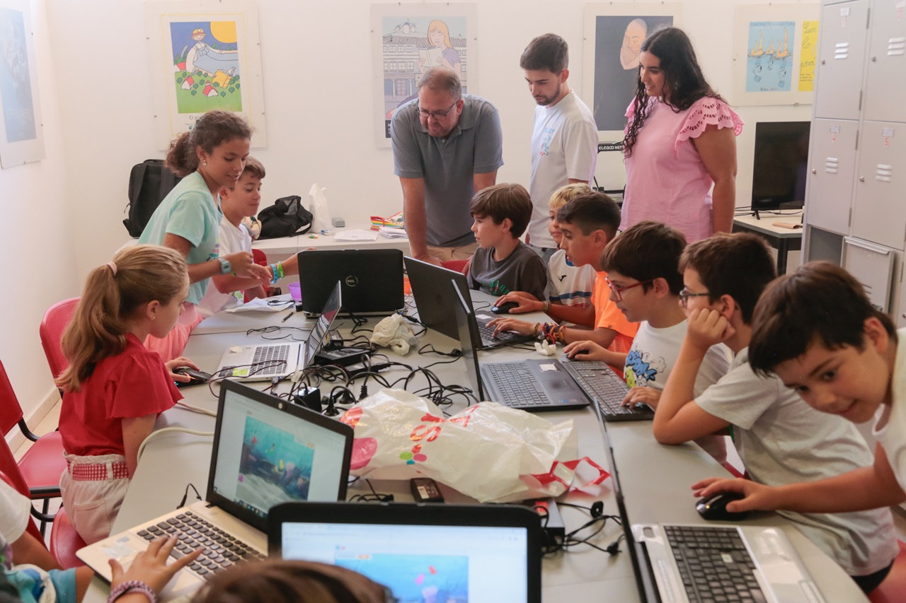 El alcalde, Antonio Rodríguez Osuna, acompañado por la delegada de Juventud, Laura Iglesias, ha visitado esta mañana los campamentos de actividades acuáticas y de robótica y drones que se están celebrando en Proserpina y el Centro de Ocio Joven El Economato, respectivamente.