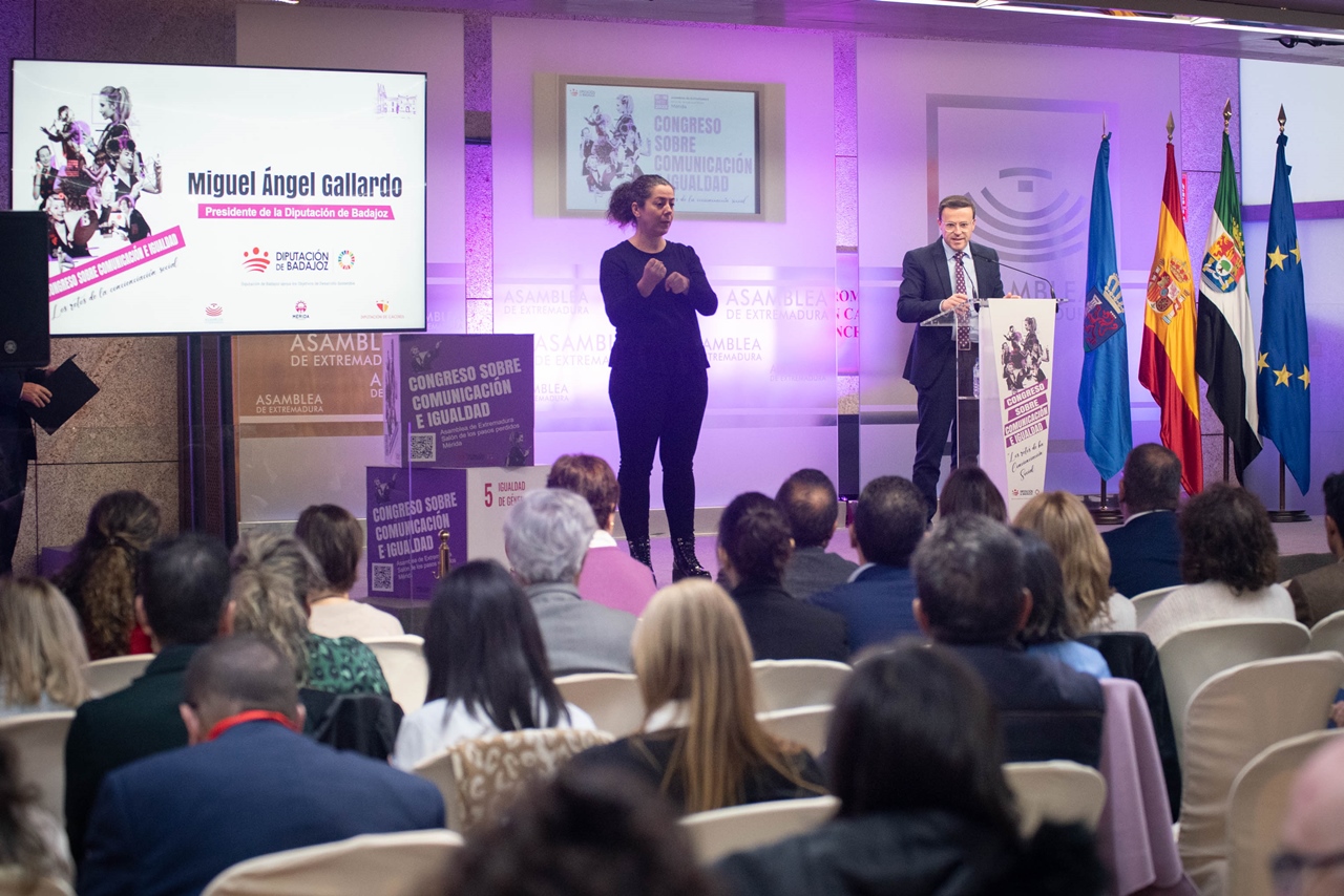 • El alcalde ha intervenido en la inauguración del Congreso Comunicación e Igualdad que se celebra en la Asamblea de Extremadura y ha señalado que “debemos ser diligentes, comprometidos y no perder ni un minuto más para combatir la peor lacra que sufre nuestro país en décadas”.