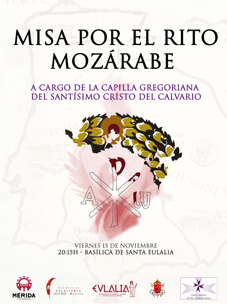 El viernes, 15 de noviembre, a las 20:15 horas, la Basílica de Santa Eulalia acogerá una Misa por el Rito Mozárabe a cargo de la Capilla Gregoriana del Santísimo Cristo del Calvario