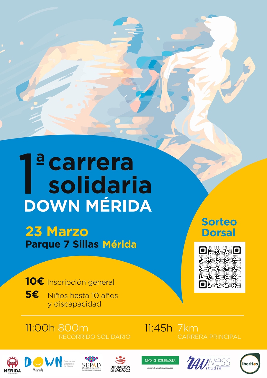 La asociación Down Mérida y el club Mitreo, con la colaboración del Ayuntamiento, organizan la I Carrera Solidaria con motivo de la celebración del día mundial del síndrome de Down, que tiene lugar cada 21 de marzo.