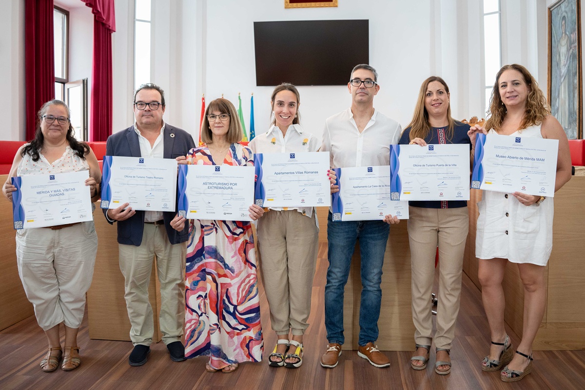 - Por parte del sector turístico privado, ya son 4 los servicios que se encuentran distinguidos en la ciudad: Apartamentos Turísticos La Casa de la Alcazaba, Apartamentos Turísticos Villas Romanas y los servicios turísticos Mérida y Más y Astroturismo por Extremadura