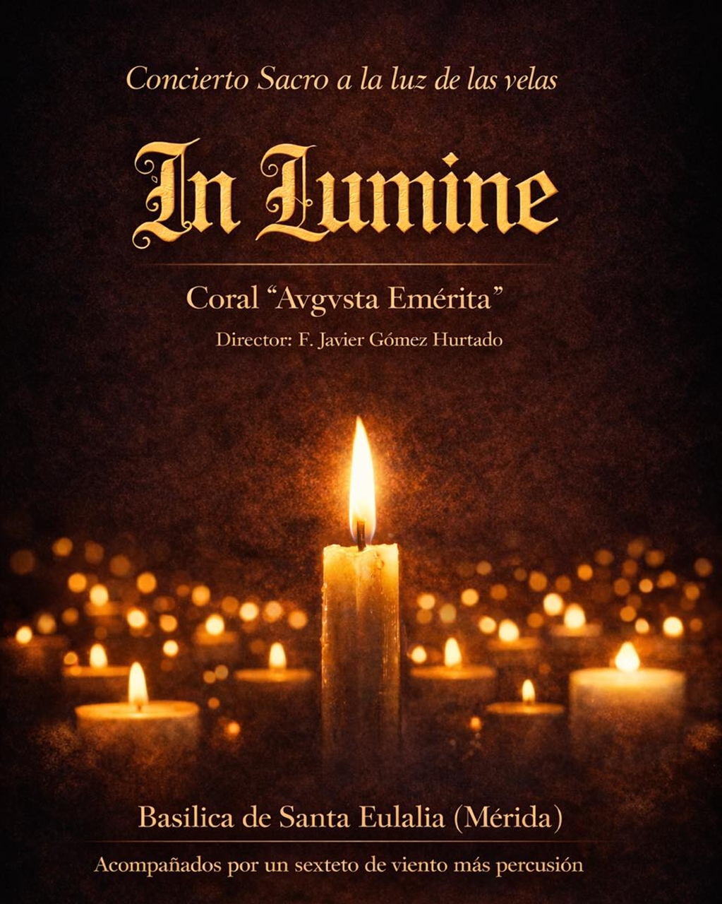 El jueves 12 de marzo, a las 20:00 horas, la Coral Avguvsta Emerita ofrecerá un Concierto Sacro a la luz de las velas ‘In Lumine’ en la Basílica de Santa Eulalia. Entrada libre hasta completar aforo.