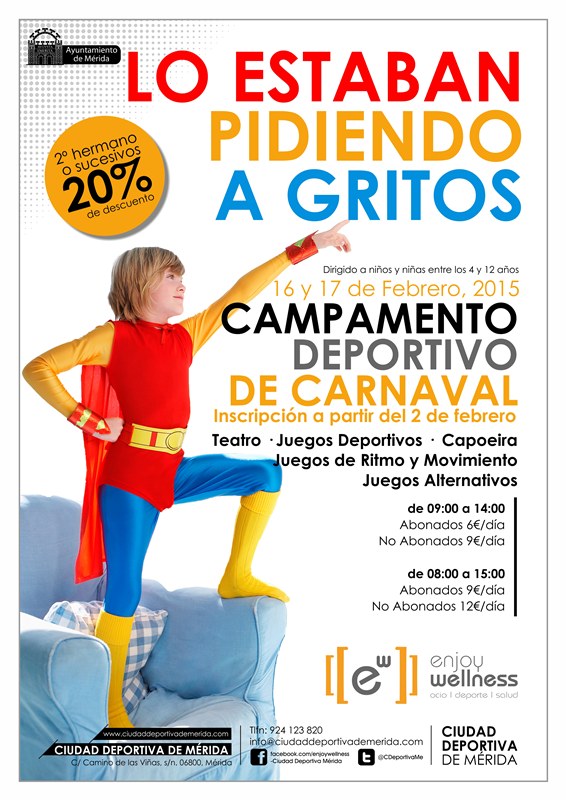 La Ciudad Deportiva de Mérida organiza el segundo Campamento Deportivo de Carnaval, que se celebrará los días 16 y 17 de febrero.