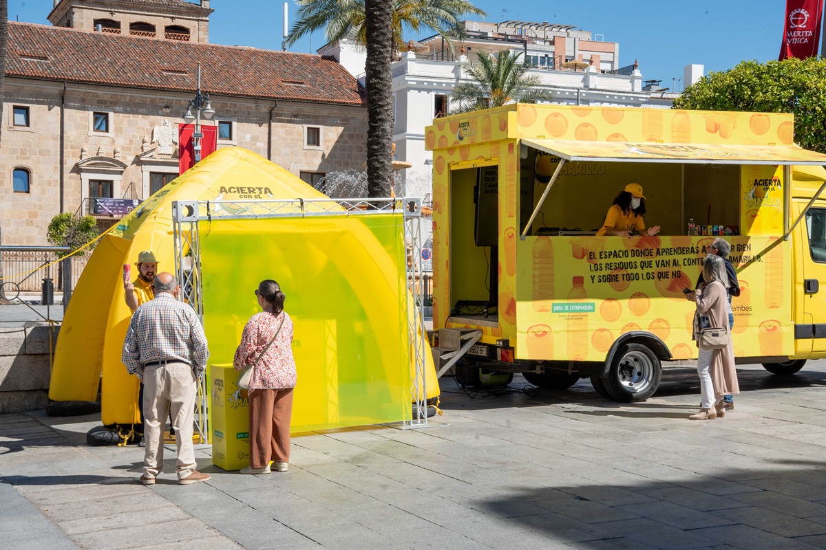 A través de un despliegue a pie de calle la campaña presenta una foodtruck y unos monitores medioambientales que invitarán a los vecinos a que se acerquen y se tomen un refresco. Mientras tanto, se proyecta un video didáctico para que, posteriormente, pongan a prueba sus conocimientos a través de un juego en el que tendrán que acertar qué residuos que van al amarillo y cuáles no.