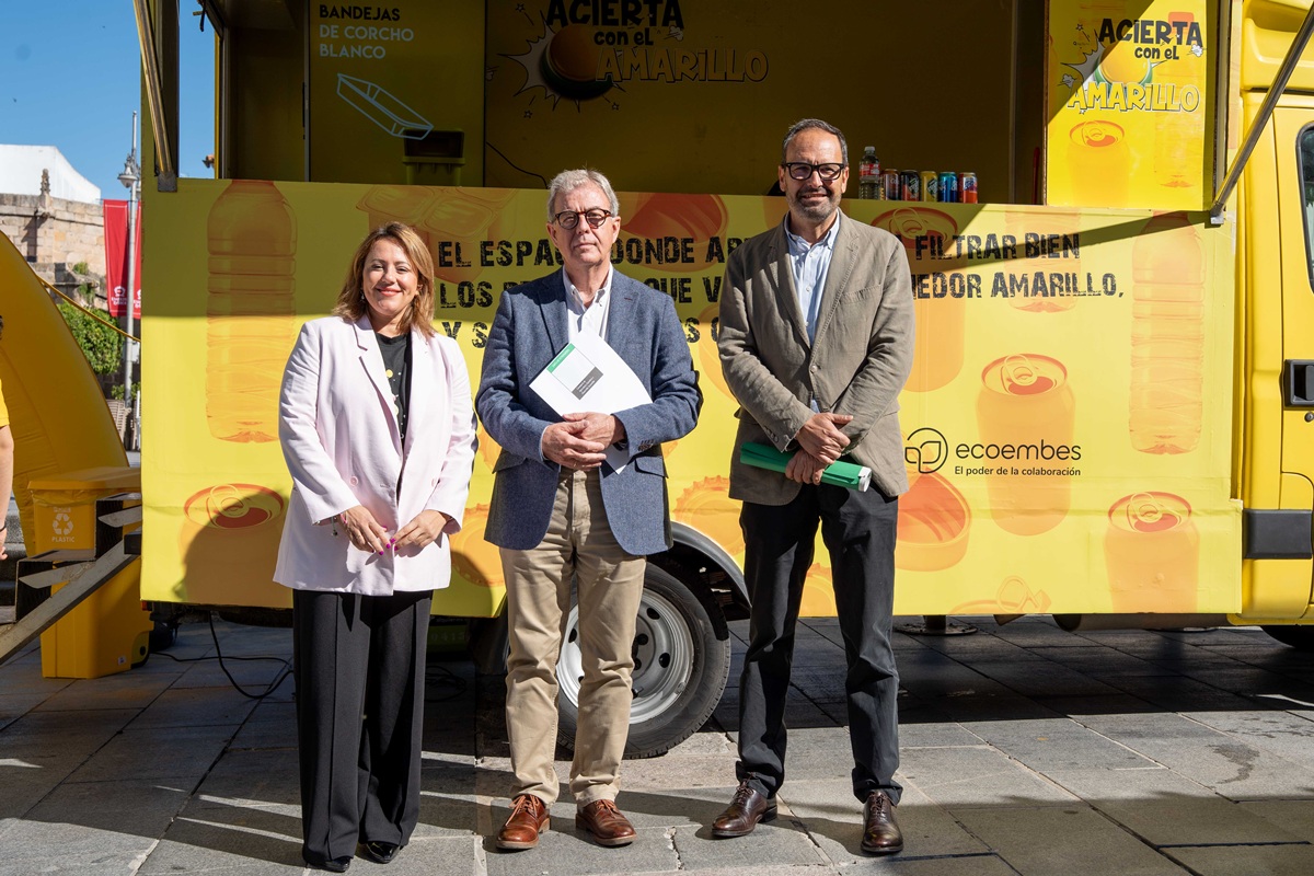 La campaña “Acierta con el amarillo” ha llegado hoy a la Plaza de España para formar sobre qué residuos que deben depositarse en el contenedor de este color.