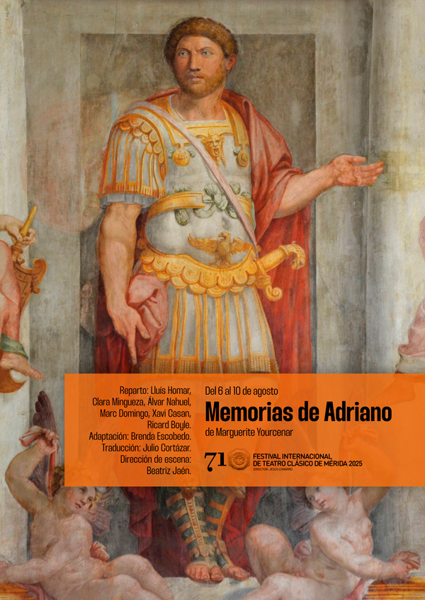 Memorias de Adriano es un espectáculo basado en la novela Memorias de Adriano de Marguerite Yourcenar. Este texto, mundialmente conocido, es un testimonio en primera persona de la vida del emperador romano nacido en España. Es, en términos literarios, una falsa autobiografía. En términos teatrales, por lo tanto, es una falsa personificación: Adriano no vive en el siglo II, aunque lo recuerde. Esta unión de planos es el universo de nuestro montaje. Con un lenguaje lleno de lirismo y con una admiración hacia su perfil helénico, Yourcenar recrea la figura de un mandatario tan sabio y magnífico como ciego y contradictorio. En ambos perfiles se dibuja el gesto de la soledad.