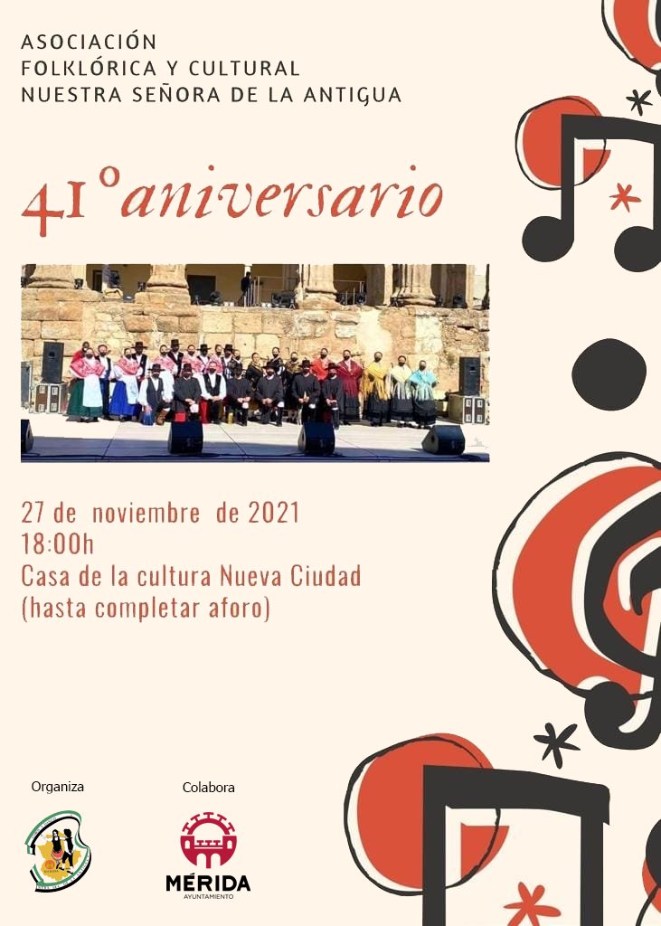 El sábado 27 de noviembre, la Asociación Folklórica y Cultural de La Antigua ofrecerá una actuación con motivo de su 41 aniversario. Será a las 18:00 horas, en el Centro Cultural de Nueva Ciudad, con entrada libre hasta completar aforo