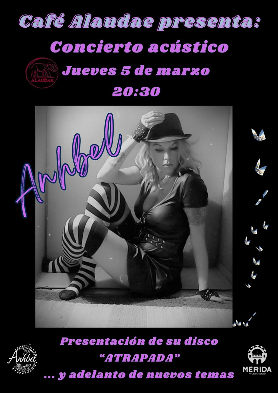 La artista emeritense Anhbel ofrecerá un concierto acústico el próximo día 5 de marzo en el Café Alaudae, a las 20:30 horas, en una cita íntima y cercana con el público de Mérida.