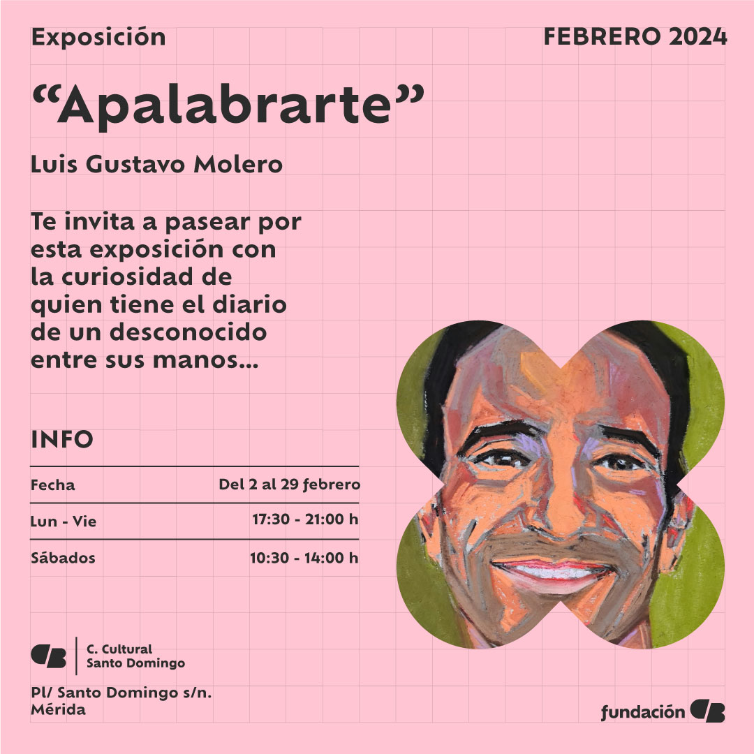 Del 2 al 29 de febrero Luis Gustavo Molero expondrá la exposición «Apalabrarte» en el Centro Cultural «Santo Domingo» de Fundación CB, en Mérida.