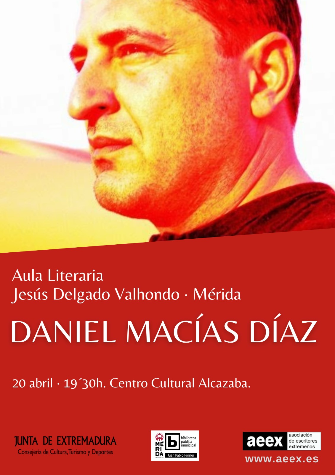 El martes 20 de abril, el Aula Literaria Jesús Delgado Valhondo de la Asociación de Escritores Extremeños, organiza un encuentro literario con el escritor Daniel Macías Díaz, en la tercera planta del Centro Cultural Alcazaba, a las 19:30 horas.