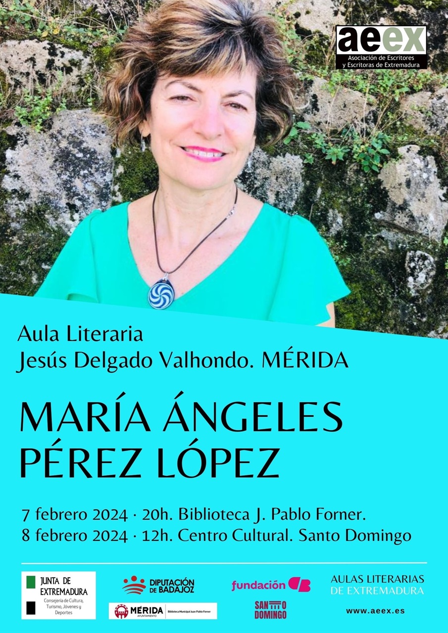 El miércoles 7 de febrero, el Aula Literaria Jesús Delgado Valhondo de la Asociación de Escritores Extremeños organiza un encuentro literario con la escritora María Ángeles Pérez López, en la Biblioteca Municipal Juan Pablo Forner (para todos los públicos por la tarde) y el Centro Cultural Santo Domingo de la Fundación CB (centros educativos por la mañana), respectivamente.