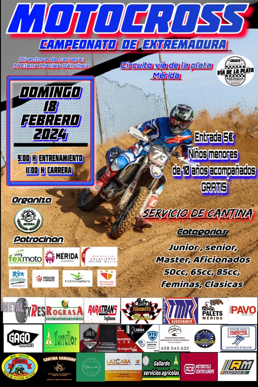 El domingo 18 de febrero, a partir de las 9:00 horas, el Circuito Municipal Vía de la Plata acoge la 1ª Prueba del Campeonato de Extremadura de Motocross organizada por el MotoClub Vía de la Plata. Entrada: 5€ (menores de 10 años gratis).