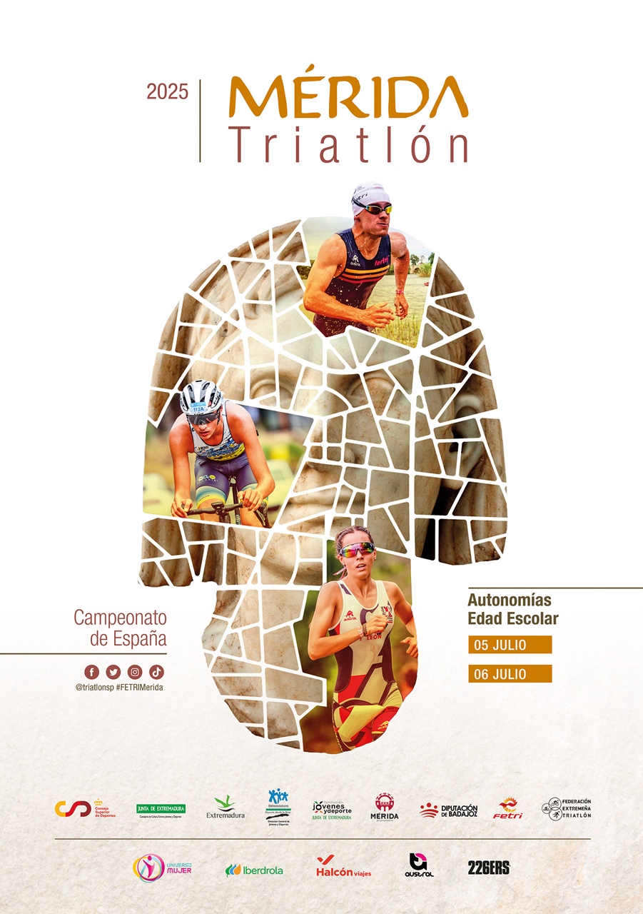 Mérida volverá a acoger pruebas nacionales de Triatlón, los días 5 y 6 de julio, con la celebración de los Campeonatos de España en Edad Escolar y de Autonomías en el entorno del Parque de las VII Sillas.