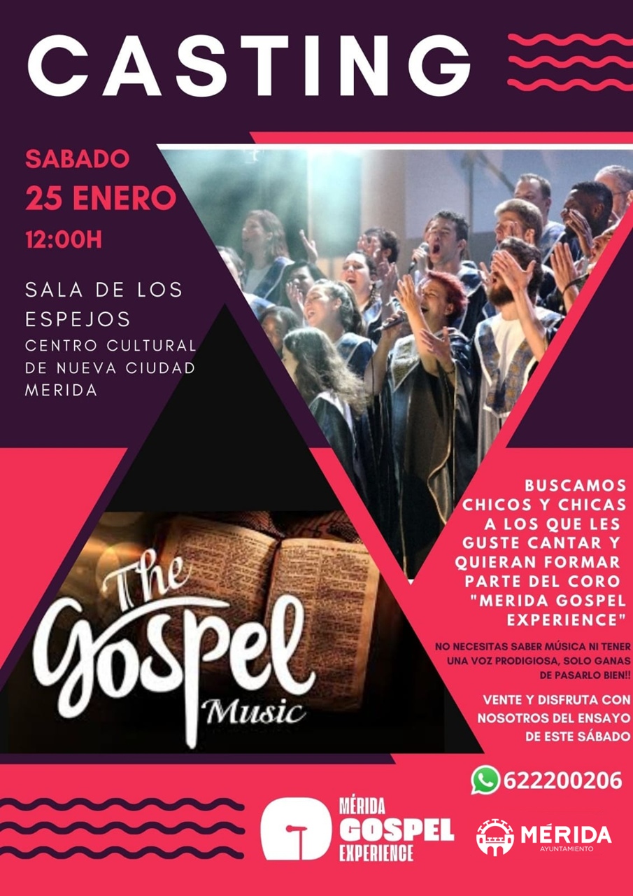 Mérida Gospel Experience busca cantantes de todas las edades con o sin experiencia en el mundo de la música para cantar en un coro gospel en Mérida (al margen de cualquier creencia religiosa o de cualquier tipo…), y aprender técnica vocal, actuar, bailar, reír y conocer gente… Tienen muchos proyectos en mente y quieren contar contigo para formar parte de su grupo.