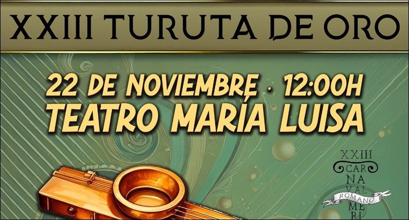 El sábado 22 de noviembre, a partir de las 12:00 horas, el Teatro María Luisa acoge la celebración de la Gala de la entrega de los XXIII Premios Turuta de Oro, galardones que son el máximo reconocimiento carnavalero de la ciudad y que este año han sido concedidos a Celia Lafuente, Sergio Román “Yeyi” y […]