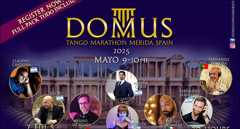 Los días 9, 10 y 11 de Mayo, las instalaciones del Hotel Romero Mérida acoge la celebración del DOMUS TANGO MARATHON con unos 250 bailarines profesionales llegados desde todo el territorio nacional y varios países como Italia, Alemania, Rusia, Malta, Colombia, Argentina, Portugal y Francia. El programa consiste en 12h de tango consecutivas cada día, […]