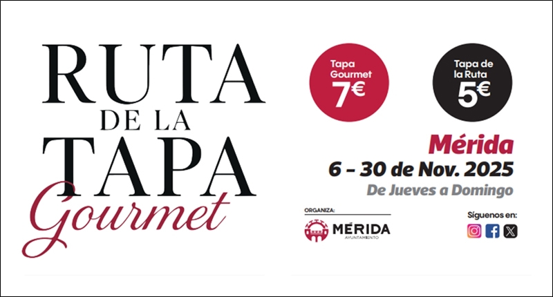 Del 6 al 30 de noviembre (de jueves a domingo) se desarrollará una nueva edición de la Ruta de la Tapa Gourmet de Mérida en la que participarán 14 establecimientos de diferentes puntos de la ciudad. Los establecimientos son: Restaurante Ayre • Cachicho Casa Benito • Capriccio Italiano-Senso Unico • De tripas corazón • Mirador del […]