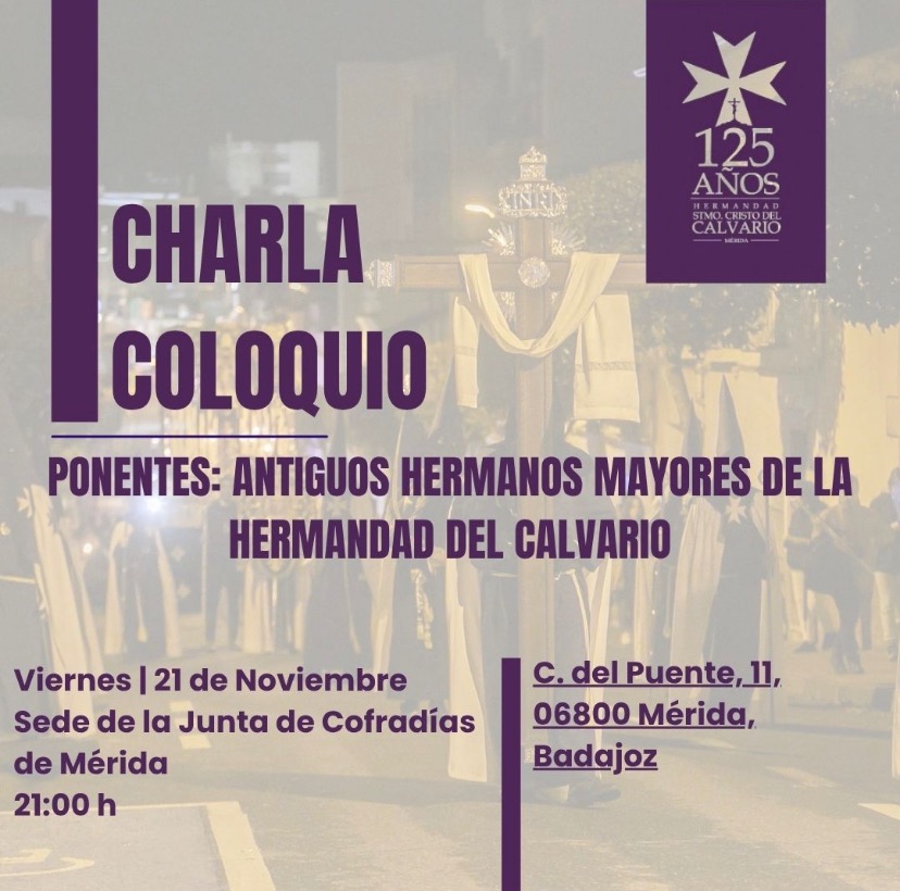 La Sede de la Junta de Cofradías acoge la charla-coloquio de los Antiguos Hermanos Mayores de la Hermandad, el viernes 21 de noviembre, a las 21:00 horas. Acceso libre