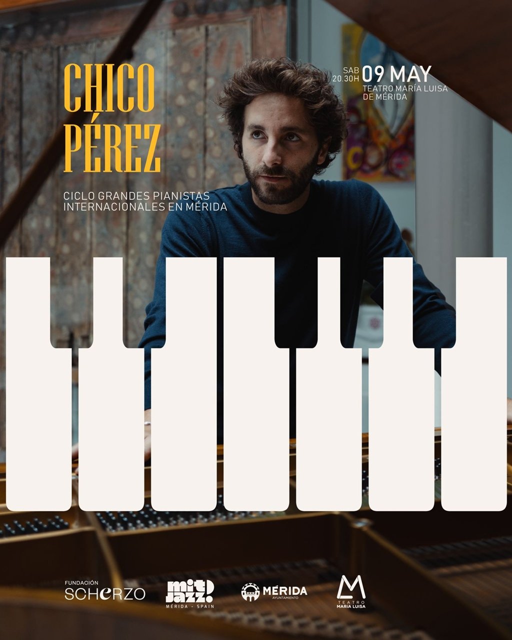 El Teatro María Luisa acogerá un concierto del pianista español Chico Pérez el sábado 9 de mayo de 2026, a las 20:30 horas, dentro del Ciclo Grandes Pianistas Internacionales en Mérida fruto de la colaboración entre la Fundación Scherzo y el Festival Mitjazz de Mérida.