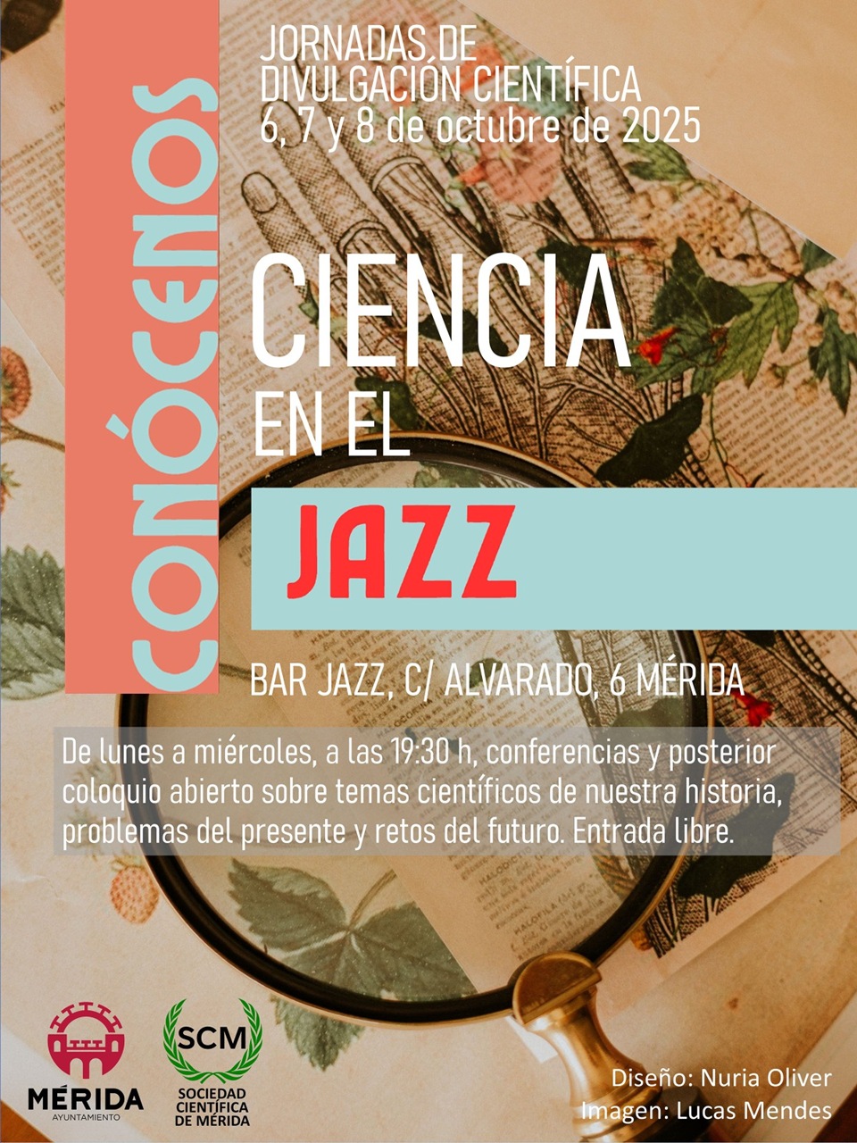 Los días 6, 7 y 8 de octubre, la Sociedad Científica de Mérida celebrará en al Jazz Bar Mérida las jornadas de difusión científica «Ciencia en el Jazz». Cada día, de lunes a miércoles, comenzando a las 19:30, habrá dos charlas sobre temas científicos de nuestra historia, nuestro presente y retos del futuro. Al final, habrá tiempo para preguntar y debatir. La entrada es libre hasta completar aforo.