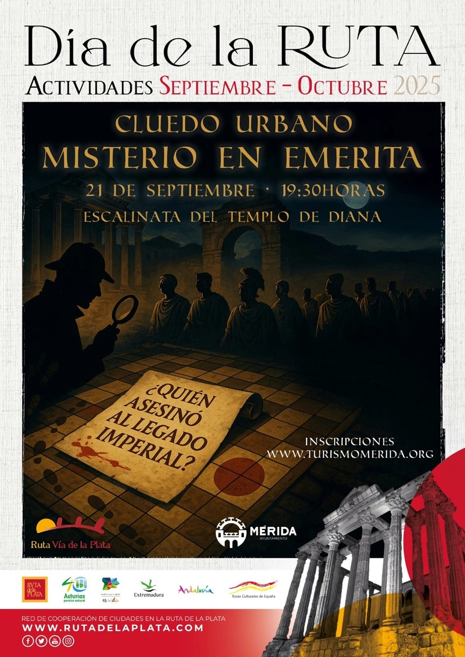 Con motivo de los actos conmemorativos del Día de la Ruta de la Plata, las calles del centro histórico de Mérida se transformarán en el tablero de un gran juego de investigación con la llegada de la experiencia inmersiva: «Cluedo urbano. Misterio en Emerita», una innovadora propuesta cultural donde el público se convierte en detective y protagonista de una historia ambientada en la época romana.