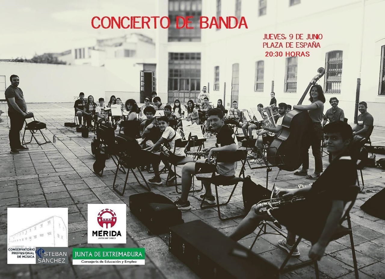 El próximo jueves, 9 de junio, la Banda de Enseñanzas Elementales del Conservatorio Esteban Sánchez, dirigida por el profesor Francisco Javier Guillén García, y la Banda de Enseñanzas Profesionales, dirigida por el profesor Antonio Moreno Pérez, ofrecerán un concierto en la Plaza de España a partir de las 20:30 horas. Con la colaboración de la Delegación de Educación del Ayuntamiento de Mérida, el Conservatorio ofrecerá una serie de conciertos en diversos puntos de la ciudad durante el mes de junio siendo este el primero de ellos y que pretenden clausurar la actividad musical desarrollada a lo largo del presente curso.