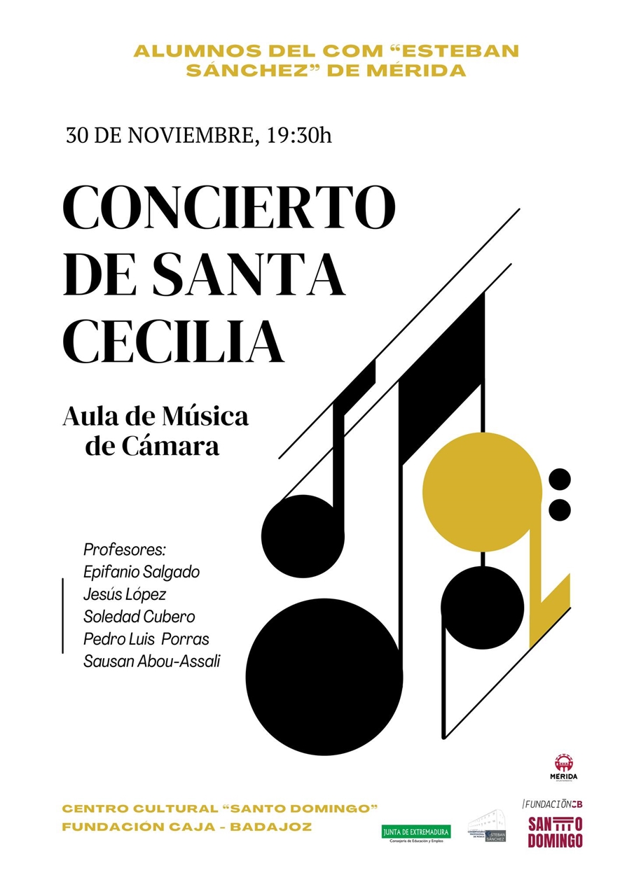 El miércoles 30 de noviembre, el Centro Cultural Santo Domingo acoge el Concierto de Santa Cecilia con la participación del Aula de Música de Cámara del Conservatorio Esteban Sánchez. A partir de las 19:30 horas. Entrada libre