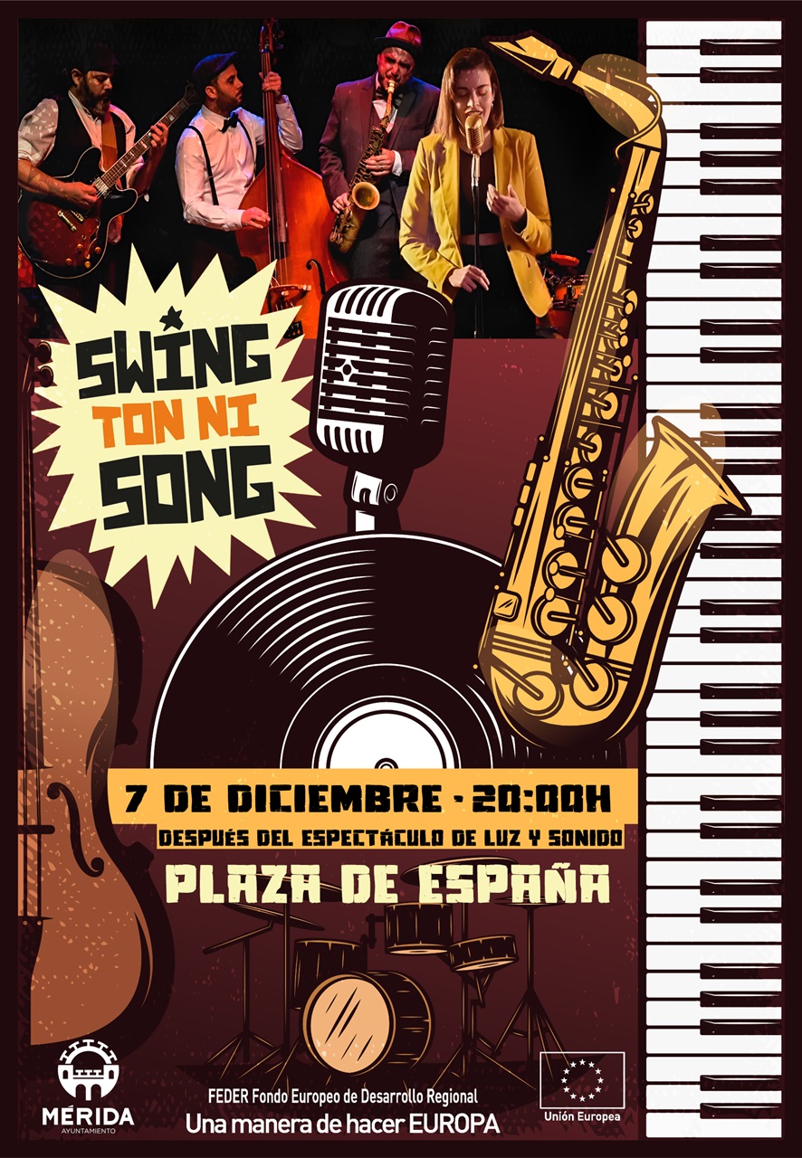 La Plaza de España acoge el concierto del grupo ‘Swing Ton Ni Song’ junto a Aurora Samino, el miércoles 7 de diciembre, a partir de las 20:00 horas. Nos ofrecerán un repertorio de temas navideños con su peculiar estilo que incluye Blues, del Dixieland, Calipso, New Orleans, Latin o Swing