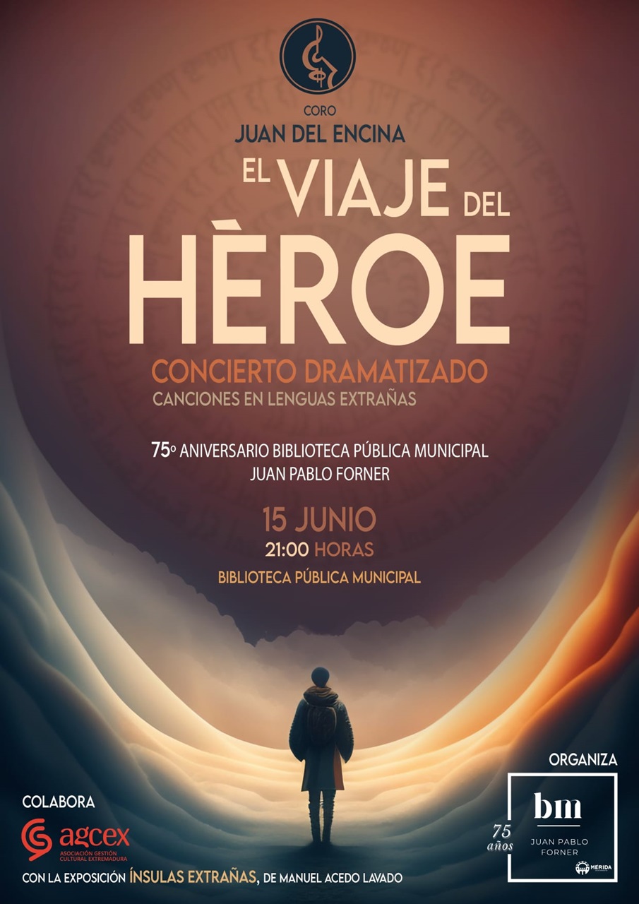 El 15 de junio, a las 21 horas, tendrá lugar el concierto dramatizado ‘El viaje del Héroe’ (canciones en lenguas extrañas) a cargo del Coro Juan del Encina en la Rotonda del Centro Cultural Alcazaba. Colabora además la Agcex (Asociación de Gestores Culturales de Extremadura) con la exposición Ínsulas extrañas de Manuel Acedo Lavado.