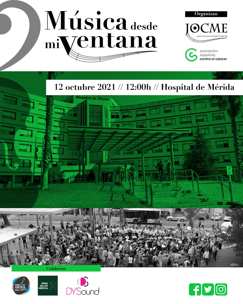 La Joven Orquesta Ciudad de Mérida (JOCME), en colaboración con la Asociación Española contra el Cáncer y el Centro de Salud de Mérida, ofrecerá un concierto a todos los pacientes, familiares y personal sanitario y trabajadores del hospital de Mérida como regalo y muestra de agradecimiento hacia todos ellos por la labor que realizan cada día. Será el martes 12 de octubre, a partir de las 12:00 horas, en la puerta principal del Hospital de Mérida.