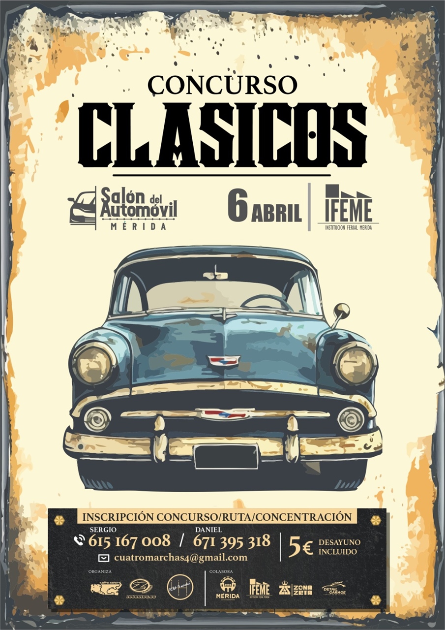 El sábado 6 de abril, por la mañana, tendrá lugar una concentración y ruta de coches clásicos que discurrirá por los municipios cercanos a Mérida finalizando en IFEME que dará visibilidad a los automóviles clásicos, donde se ofrecerá un desayuno y almuerzo a los participantes.