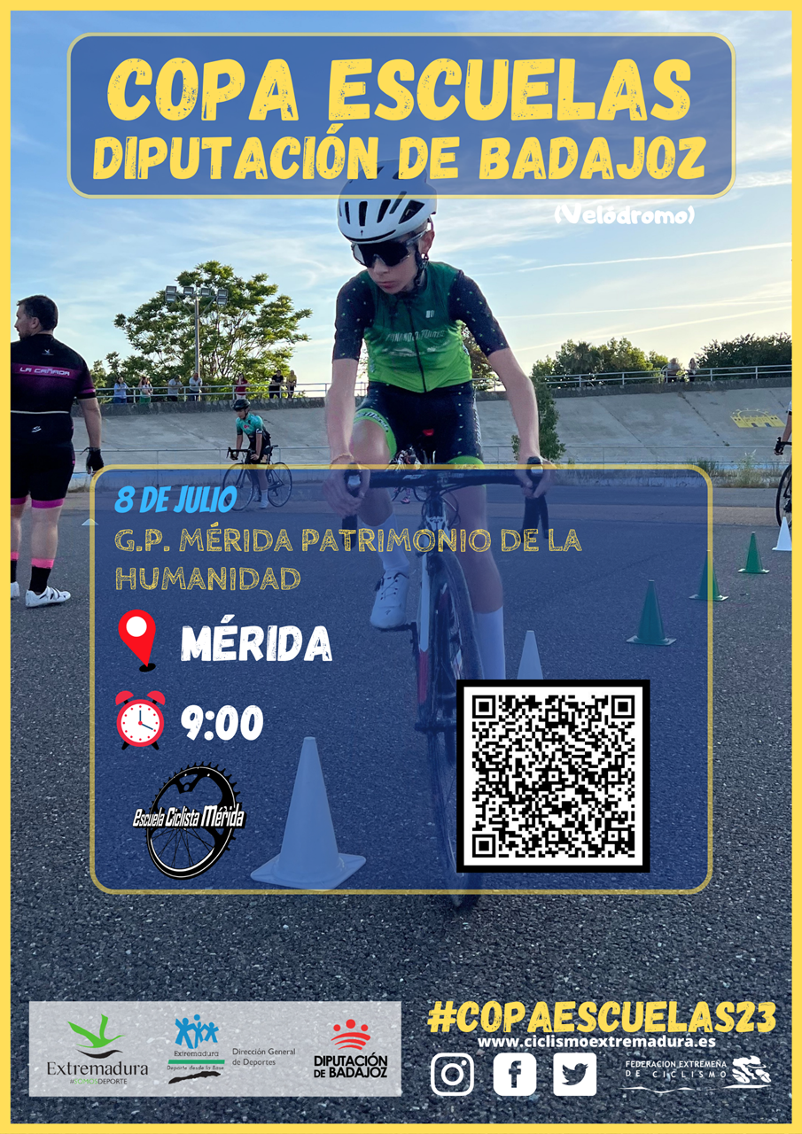 El sábado 8 de julio, a partir de las 9:00 horas, el Velódromo Municipal José María Lozano acoge la Copa Escuelas de Ciclismo patrocinada por la Diputación de Badajoz. Categorías Junior Fem., Escuelas Fem., Escuelas, Cadete Fem., Cadete y Junior