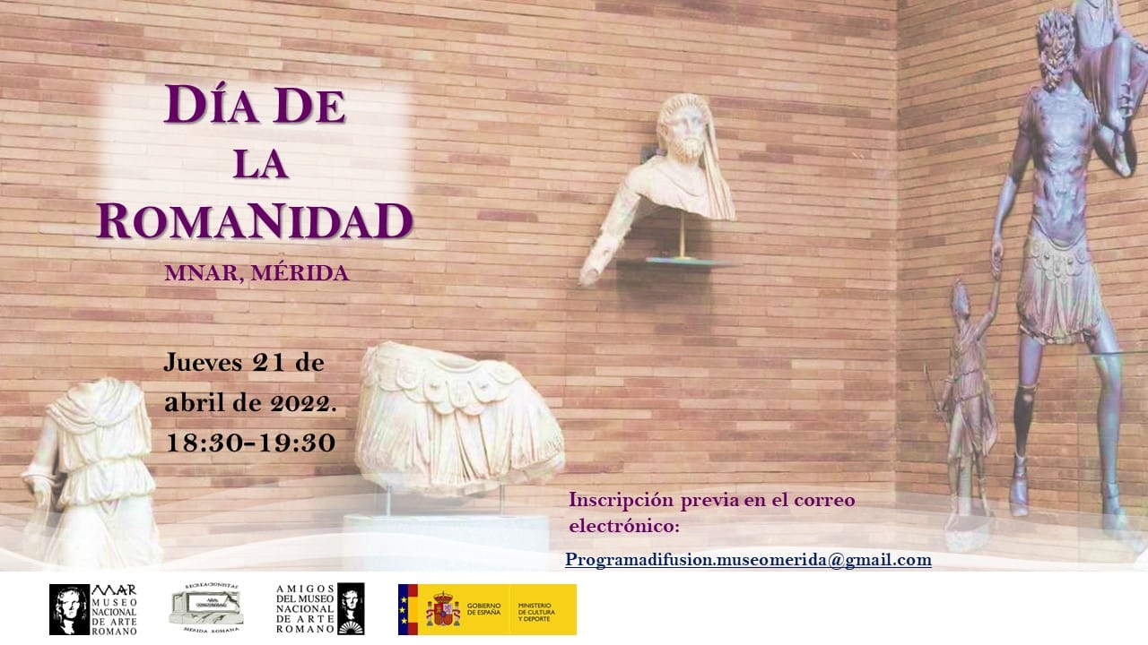El jueves 21 de abril, a las 18:30 horas, el Museo Nacional de Arte Romano celebra el Día de la Romanidad en el que personajes como Eneas, Ascanio y Anquises guiarán a los asistentes a través de la fundación mítica de Roma en las salas del Museo. Se necesita inscripción previa en programadifusion.museomerida@gmail.com