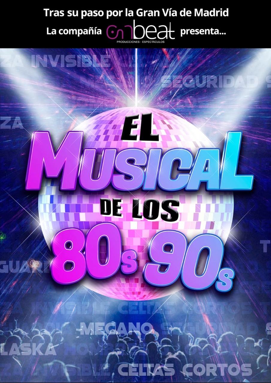 La compañía Onbeat presenta ‘El Musical de los 80s 90s’. Un espectáculo original, de una época única, en el que el público compartirá la experiencia de los personajes, cantando, bailando, y siendo cómplices de cada uno de ellos. El mejor pop español de los años 80 y 90 se mezcla con éxitos internacionales y con las mejores canciones del verano. Temas de Danza Invisible, Mecano, Celtas Cortos, La Guardia, Alaska, Hombres G, Los Secretos, Seguridad Social, y muchos más, sonarán en el musical más bailado de la historia.