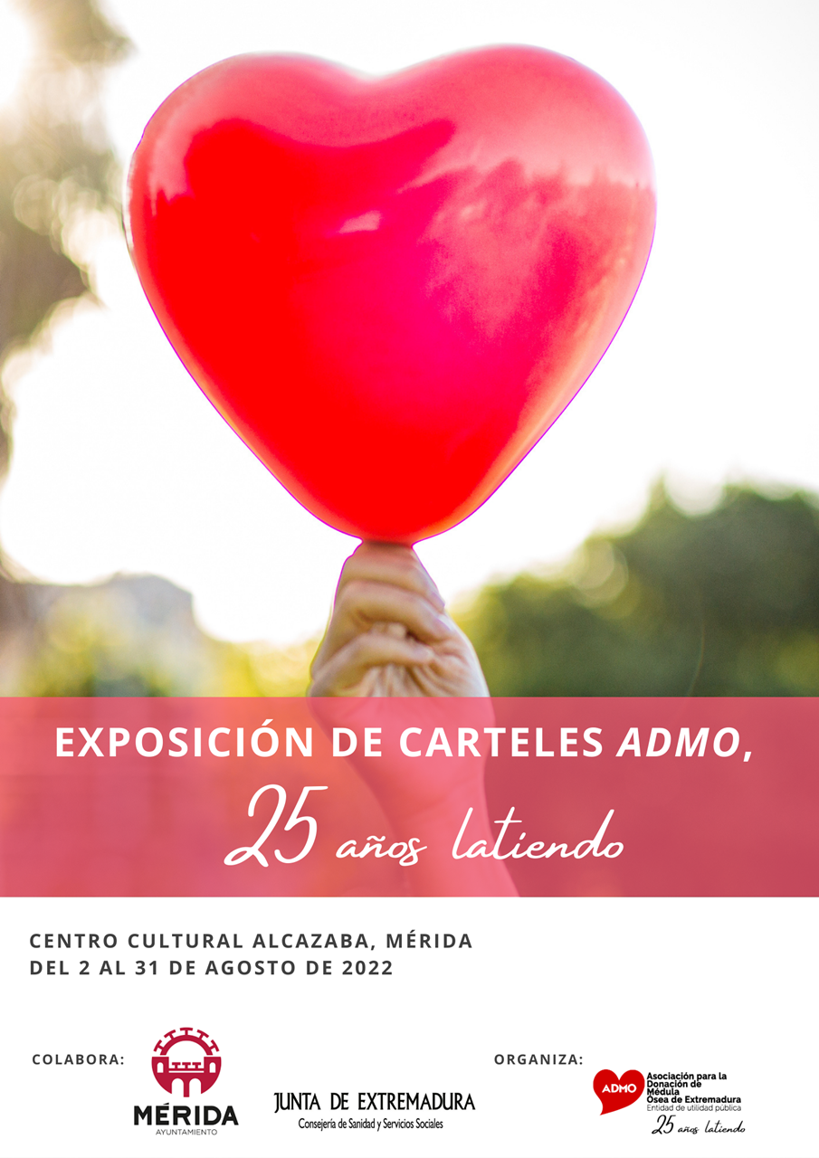 La exposición “ADMO, 25 años latiendo” recoge 25 carteles agrupados en cuatro bloques unidos por el denominador común que es transmitir los valores de esta asociación extremeña. “Fomento de la donación”, “Acciones de atención a pacientes”, “Jornadas” y “Comunicación y sensibilización” agrupan los carteles que se podrán ver en el Centro Cultural Alcazaba de Mérida entre el 2 y el 31 de agosto.