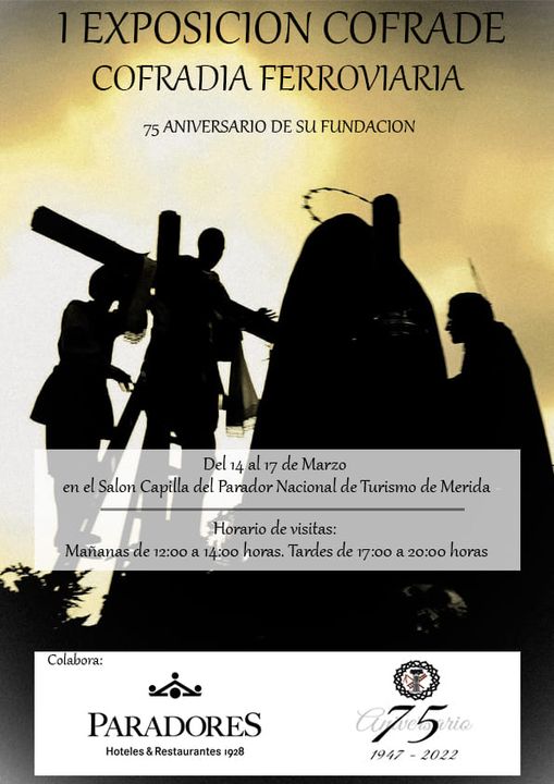 Del 14 al 17 de marzo se puede visitar, en el Salón Capilla del Parador de Mérida, la Exposición Cofrade del 75 aniversario de la Cofradía Ferroviaria que hará un recorrido por la historia de la cofradía desde los inicios y como ha ido evolucionando a lo largo de estos 75 años.