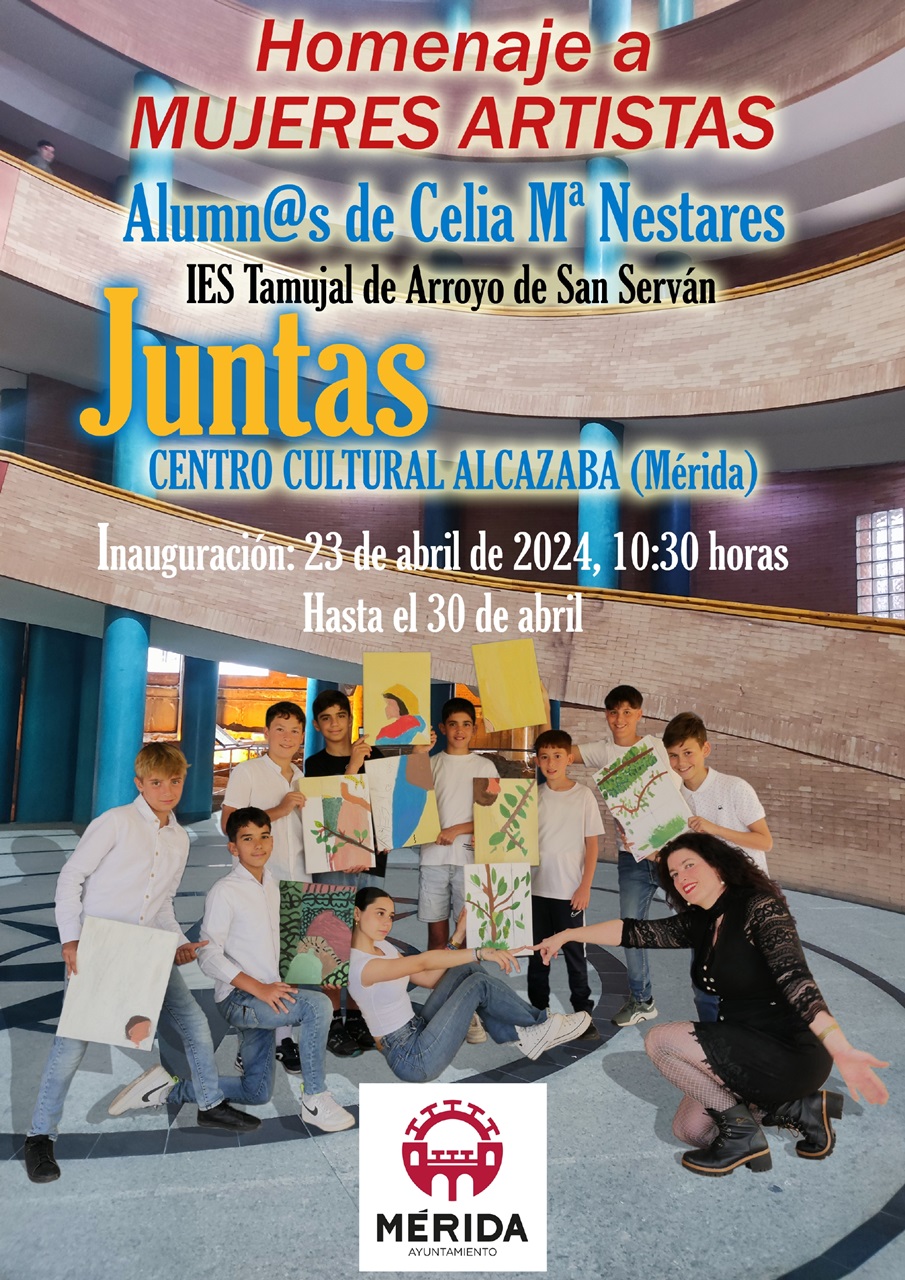 Del 23 al 30 de abril, se puede visitar en el Centro Cultural Alcazaba la exposición ‘Juntas’, un proyecto que han llevado a cabo durante tres meses el alumnado del Instituto de Educación Secundaria Tamujal, de Arroyo de San Serván. Estos alumnos y alumnas de las asignaturas de Educación Plástica del curso de 1º de la E.S.O, junto con las y los de 3º y 4º de la ESO de la asignatura Expresión Artística han creado su propia muestra a través de documentarse con la exposición “Maestras” del Museo Thyssen-Bornemisza, donde se muestran obras de mujeres artistas.