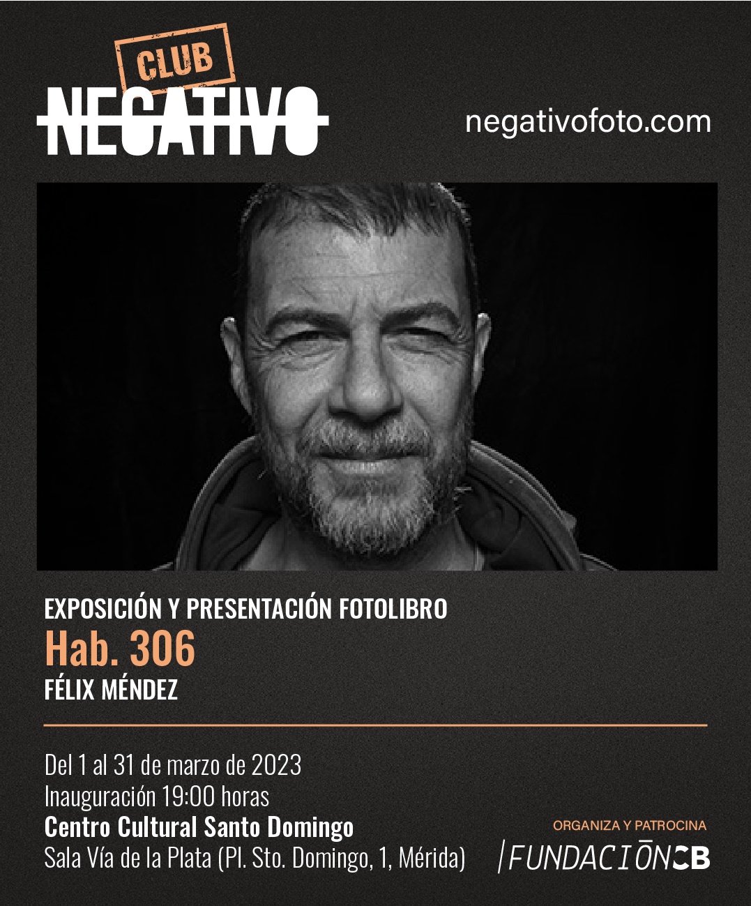 Por primera vez Fundación CB programa una actividad del CLUB NEGATIVO en Mérida, en concreto en su Centro Cultural “Santo Domingo”. La exposición de Félix Méndez “Hab. 306” se abrirá al público el próximo 1 de marzo, a las 19:00 horas. En la inauguración además se presentará un libro con las fotografías de la exposición.