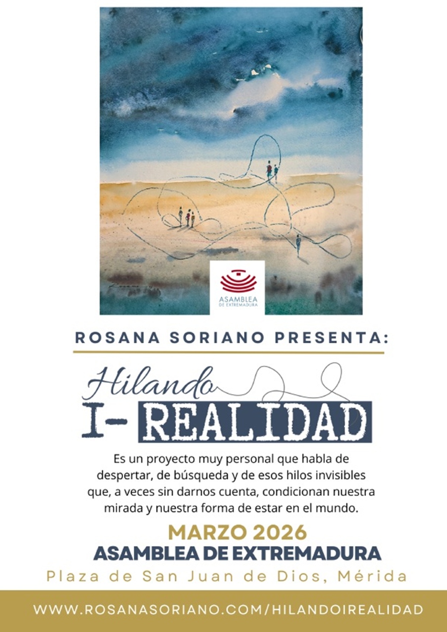 La pintora emeritense Rosana Soriano Polo ofrece en el patio noble de la Asamblea de Extremadura sus acuarelas en una exposición titulada “Hilando I-realidad”.