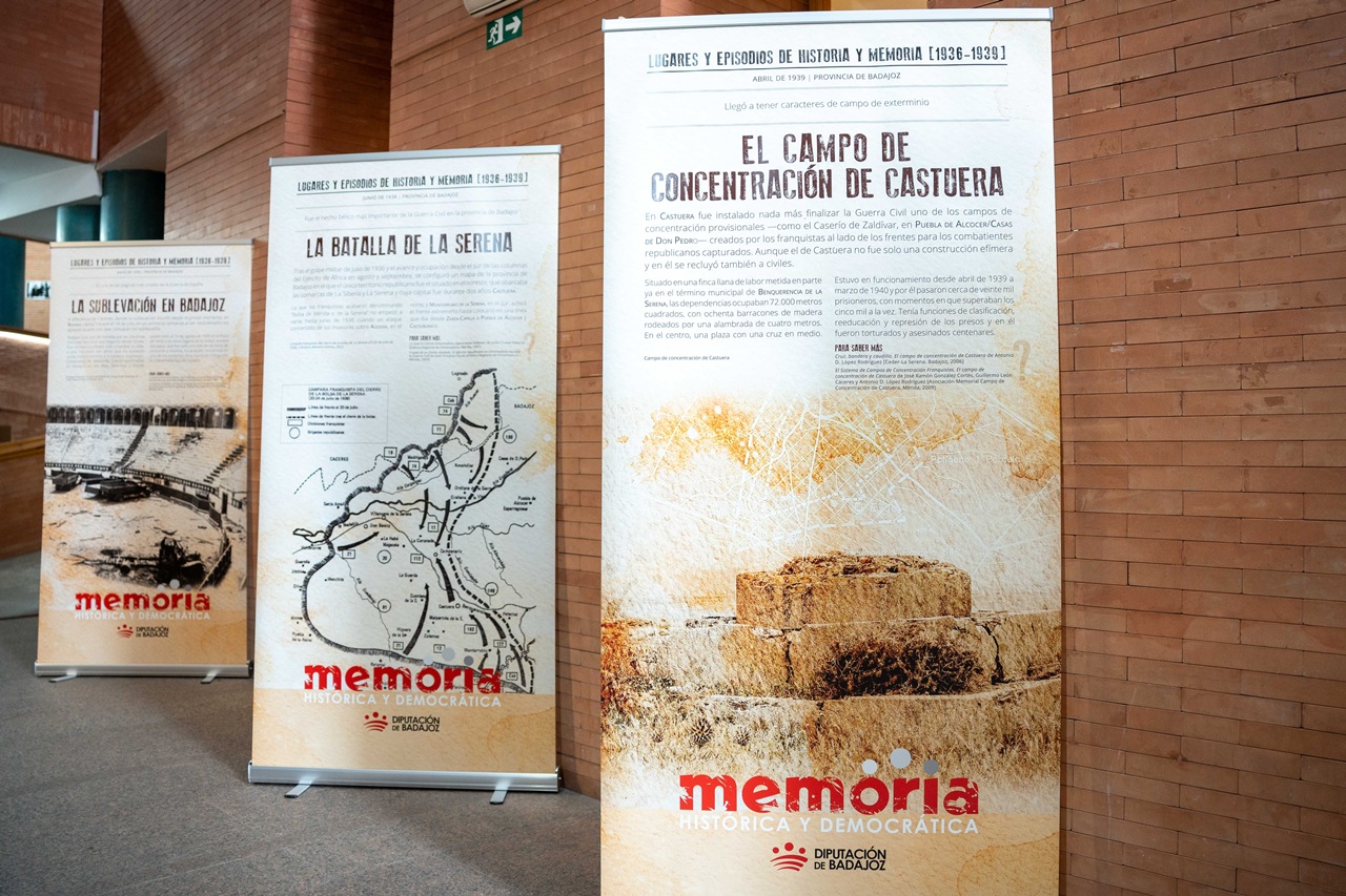 El Centro Cultural Alcazaba de Mérida acoge desde el lunes 20 de octubre y hasta el próximo 10 de noviembre la exposición «Lugares y Episodios de Historia y Memoria [1936-1939]», realizada por la Diputación de Badajoz y en la que se recogen algunos de los lugares y episodios históricos sufridos en la provincia de Badajoz durante la Guerra Civil, en el período 1936-1939, por las víctimas de la sublevación militar contra la II República.