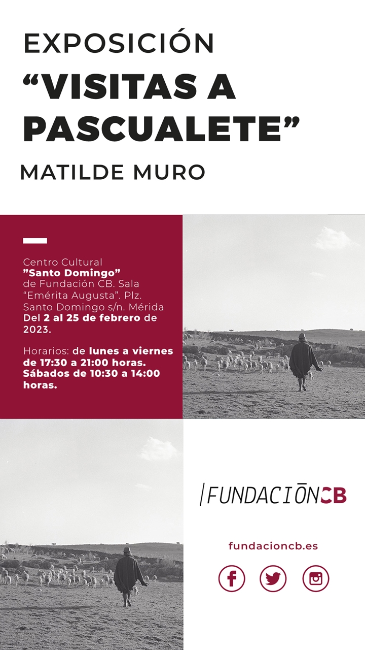 Del 2 al 25 de febrero, la sala «Emérita Augusta» del Centro Cultural Santo Domingo de Fundación CB expone una muestra de algunas de las fotografías pertenecientes al Fondo Documental Matilde Muro. Se trata de una serie de imágenes en torno a la Finca Pascualete, que fueron donadas por la Condesa de Quintanilla, Aline Griffith, a Matilde Muro. En algunas de ellas podemos observar a personalidades como Audrey Hepburn.