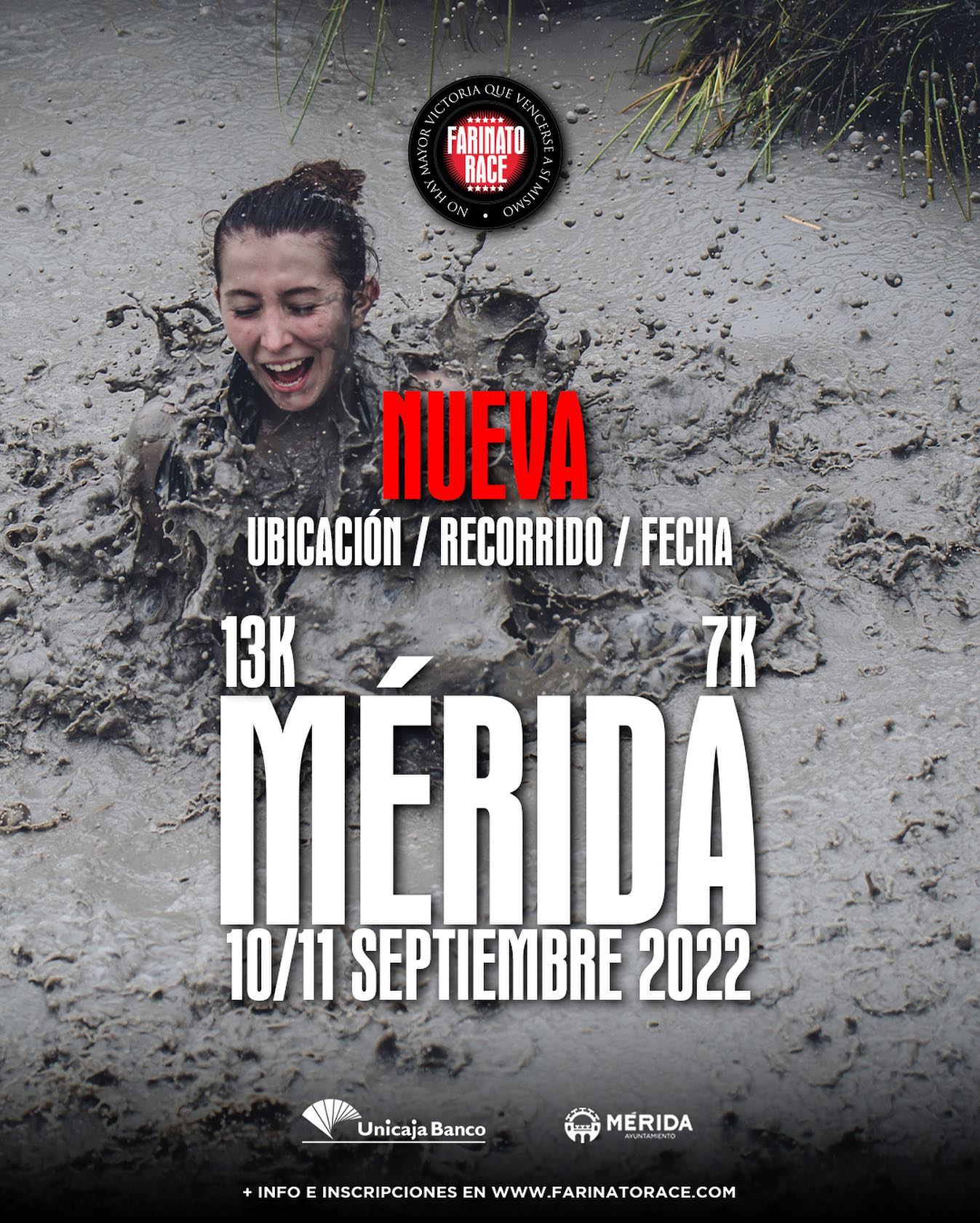 Farinato Race es el circuito de carreras de obstáculos más divertido y duro que existe, un evento deportivo muy loco y extremadamente divertido. Las carreras Farinato Race ofrecen una distancia que se adecúa perfectamente a tu nivel y capacidad y un tipo de vida con el objetivo de superar todos los obstáculos posibles. En Merida se celebrará el día 11 de septiembre de 2022 y habrá un prueba de 7K y la Farinatitos.