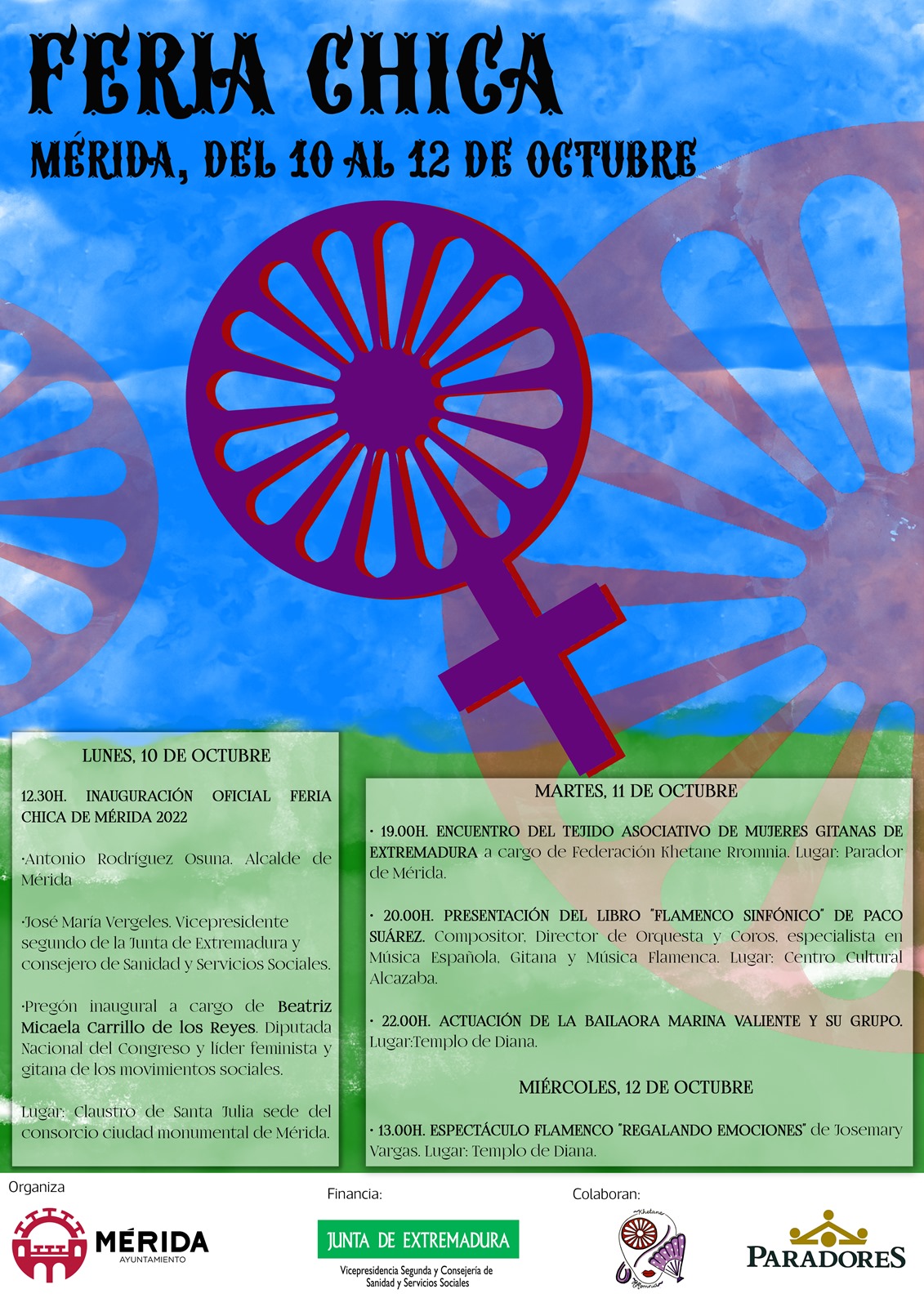 La Feria Chica comenzará el lunes 10 de octubre con la inauguración oficial que se celebrará en el Claustro de Santa Julia, a las 12,30 horas, a cargo del Vicepresidente segundo de la Junta y Consejero de Sanidad y Servicios Sociales, José María Vergeles, y del alcalde de Mérida, Antonio Rodríguez Osuna.